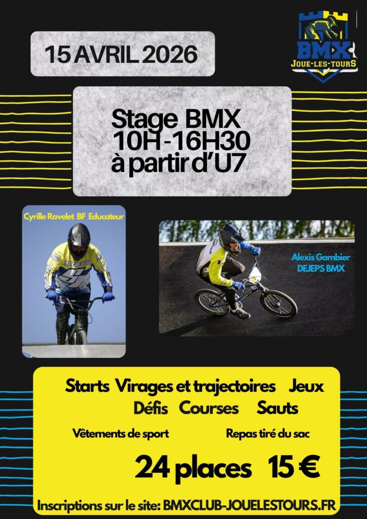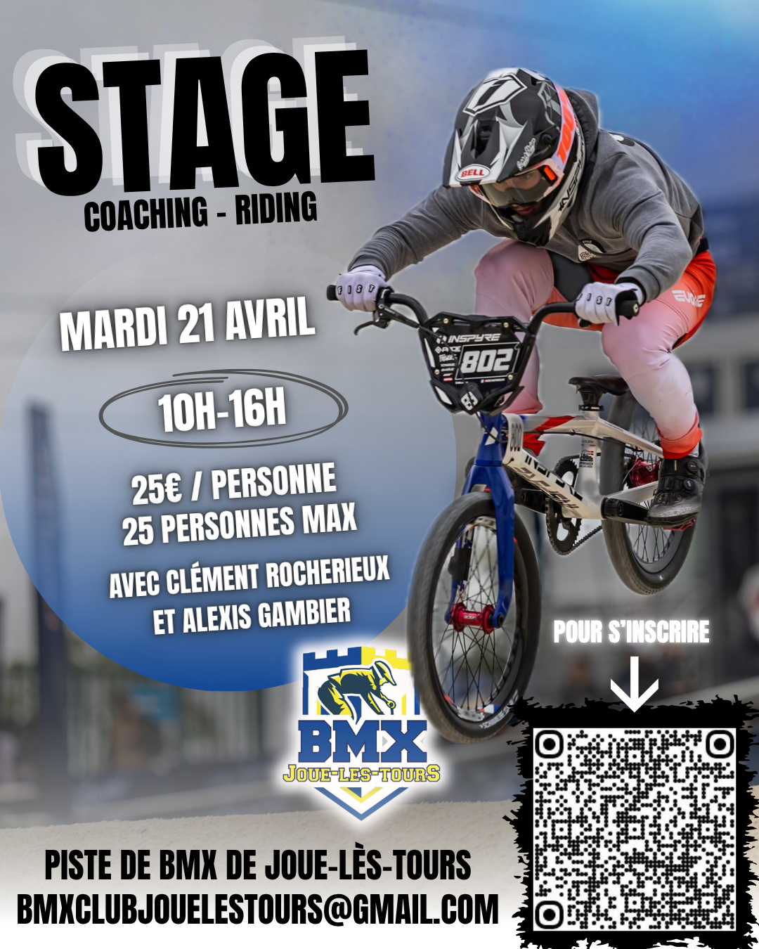 Ci-dessous les affiches des stages disponibles : Autorisation parentale à remplir pour les mineurs et à envoyer à secretariat@bmxclub-jouelestours.fr : Autorisation_parentale.pdfLien d’inscription des différents stages : – Stage du 13 avril : – Stage du 15 avril : – Stage du 21 avril :